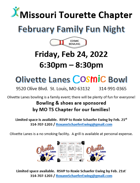 As these events approach, look for more detailed information on our Website: missouritsa.org, and Facebook Pages: Greater Missouri Tourette Syndrome Association & Tourette Families Missouri
