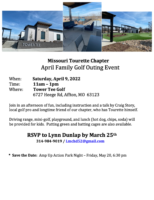 As these events approach, look for more detailed information on our Website: missouritsa.org, and Facebook Pages: Greater Missouri Tourette Syndrome Association  &  Tourette Families Missouri